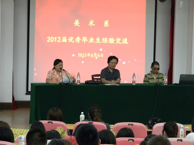 6月6日下午,美术系举行了"2012届优秀毕业生经验交流会",系主任张广才、副主任王耀年出席会议。系辅导员以及全体非毕业班学生参加会议。会议由音体美党总支书记蒋向红主持。