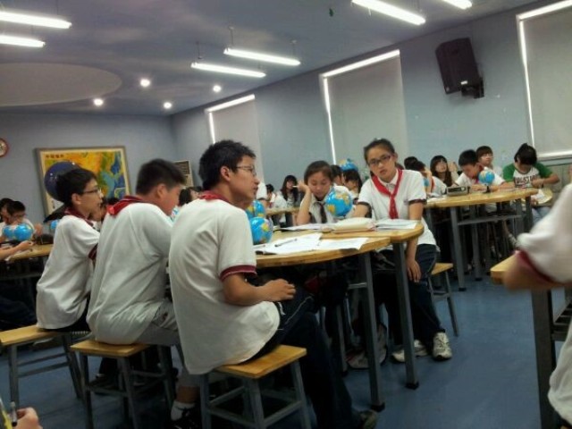在该中学"数字地球"多媒体教室,大家观摩了校长吴虹给初中生上的《极地地区》一课。吴虹校长经验丰富,语言幽默,课堂氛围轻松活跃。教学中,吴校长运用分组式教学法,借助多媒体技术,从课内知识拓展到课外领域。课后,吴校长组织地理系见习同学分组评价课堂,从而让大家切身感受中学地理分组式教学的好处。