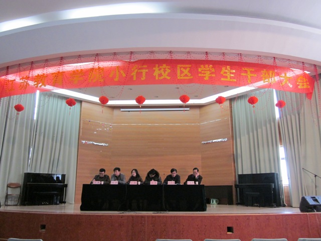 3月21日下午,2012年小行校区学生干部大会在报告厅举行。院学工处学生管理科科长丁莹、院教务处教务科副科长孙奕、该校区后勤办主任孙德盛、团委何磊、安保办王忠贵出席大会,该校区120名学生干部参加大会。大会由小行校区学工办余鑫主持。