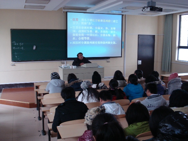 梁教授详细地给同学们讲解了江苏省各个地级市的名称变化以及由来。讲座使同学们受益匪浅,既加深了大家人文知识素养方面的积累,也激发了同学们对人文地理的学习兴趣。