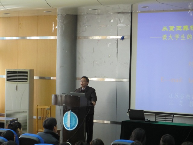 12月14日下午,教育科学与管理学院在浦口校区302报告厅举办题为《从黛玉葬花到范进中举--谈大学生的心理健康及维护》专场讲座,教管院副院长王玲玲主持,院科研处处长、学报主编刘守旗应邀主讲。
