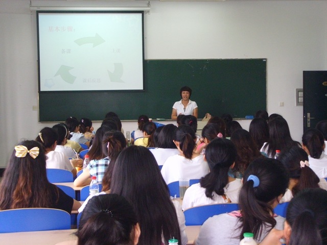 开学首日,本系邀请了南京市教研室张海燕老师来到浦口校区为学生举行专家讲座。张老师结合自身丰富的教研经验,通过理论、知识、实例和点评相结合的方式,深入浅出地努力帮助学生夯实教育教学基本功。整整两个半小时的讲座过程中,同学们目不转睛地聆听和思考,表现出对未来教师职业的极大兴趣和探究向往。
