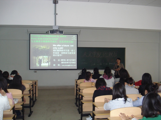 4月15日上午,人文学院地理系在小行校区教学楼2404教室举办了一场就业实习宣讲会,南京新城商务酒店和无锡希尔顿逸林酒店两家单位应邀来校宣讲。小行校区地理系本科三年级和专科二年级旅游专业的同学参加,宣讲会由人文学院办公室主任李铁英老师主持。