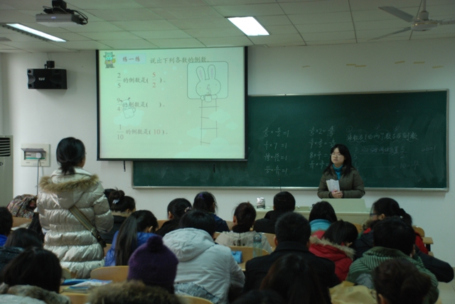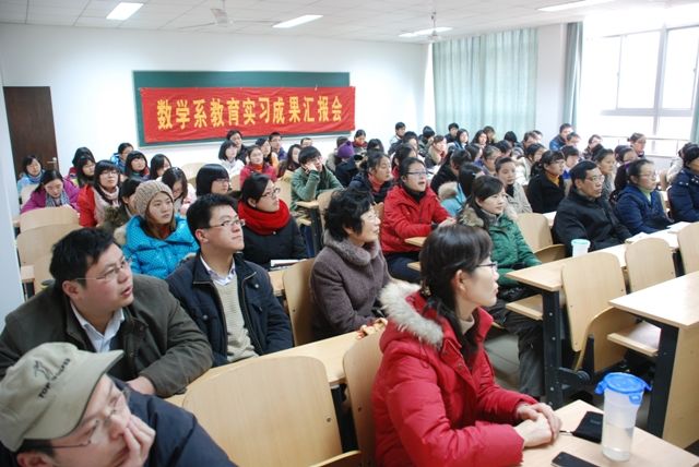 1月5日下午,数信院举行了07级数学毕业班教育实习成果汇报会。院长徐新萍、副院长孙玫以及数学专业全体教师参加汇报会。郑玮、苏春霞、刘晓君、戴婧四位学生把为期十周的实习成果以讲课的形式向师生作了汇报,曹卫东、凌晓牧老师分别针对学生们的讲课进行了一一点评。会场气氛热烈。最后徐新萍作总结,她希望同学们脚踏实地认真总结实习成果,扎实掌握数学专业知识,不断提高教师技能,在教师应聘中取得优异成绩。