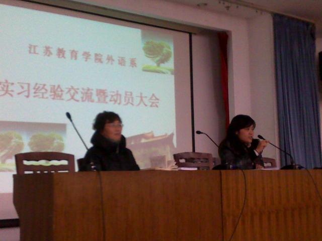 1月10日,外语系在现代教育技术楼2楼报告厅召开了实习经验交流暨动员大会。系副主任张莉、总支书记陈建琴出席。