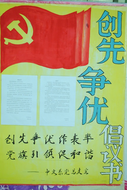 支部学生党员根据"创先争优"活动要求,发起了倡议书活动,并制作了大幅海报以达到宣传效果。