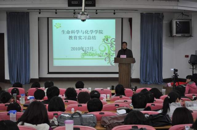 会上,生化学院副院长金浩首先从"基本情况、成绩收获、问题对策、领导调研、典型事迹"五个方面介绍了2007级教育实习的总体情况。接着,八位优秀实习生以说课比赛的形式,向全院师生汇报了教育实习的成果。通过评委讨论及投票,最终朱美华、孟筱璐、王晨、戴爱莉四位同学表现突出、获得一等奖,并将代表我院参加全校的说课大赛。专家评委从选手表现、说课技巧、教师应聘等方面为在场同学作了深入细致点评。与其说这是一次激烈的比赛,不如说是一次大家共同交流、共同探讨、共同学习、共同成长进步的活动。