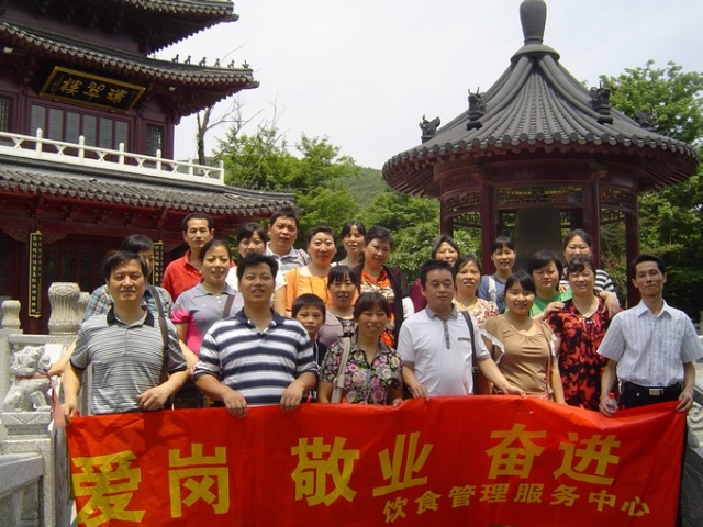 5月26、27日,饮食管理服务中心组织三个校区饮食管理人员和业务骨干分两次赴句容宝华山,开展了以"团结和谐、爱岗敬业"为主题的登山踏青活动。