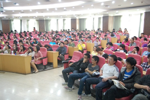 沈教授首先对高校各类自杀事件进行了点评。之后,从大学生心理要素入手,诙谐幽默、旁征博引地指出大学生普遍存在的心理问题。针对这些问题,沈教授以生动幽默的语言给我们讲解五类问题:1、人际交往;2、恋爱情感;3、学习考试;4、情绪调节;5、人生定位。