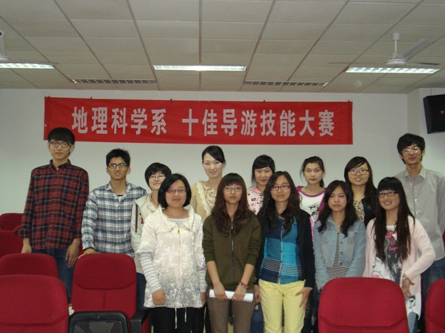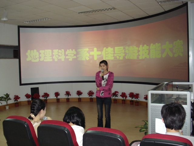 4月16日下午,人文学院地理系主办的"十佳导游"技能大赛决赛落下帷幕。通过简历筛选、笔试等选拔出来的十名选手进行了角逐。比赛由专业教师颜敏、汪希芸和辅导员龚小辉等担任评委,龚小辉主持。