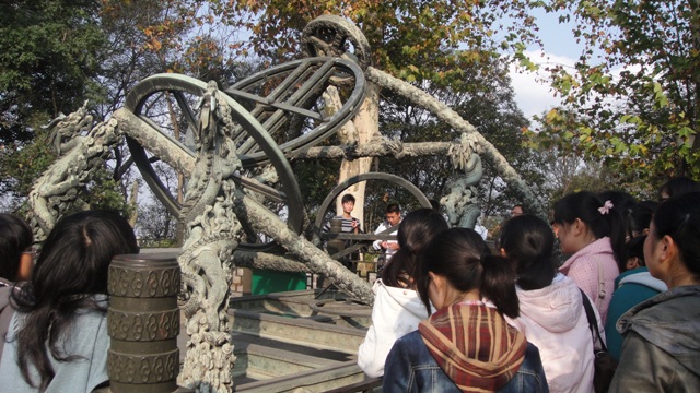 在那里,同学们看到了古代的天文仪器--天球仪、简仪、浑仪等,这些天文仪器包含了古代人的思想结晶。同学们不禁感叹古代劳动人民的智慧。而后,大家又参观了图片陈列室和天文望远镜实验室。