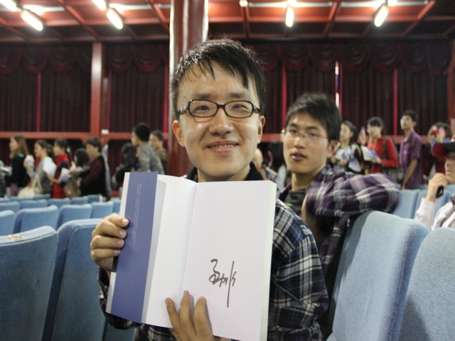 与孟非的“零距离”接触 10月12日下午,天空飘起了蒙蒙细雨,学通社“两岸三地”五十多位学子们在陶赋雯老师的带领下前往南京大学鼓楼校区,与著名主持人孟非进行了“零距离”的接触。 这位被众多观众喜爱的本土主持人在今天步入了不惑之年,迎来了他40岁生日。座谈会现场,两层的大礼堂座无虚席,大家一起翘首期待着他的到来。下午两点整,孟老师准时出现在南大鼓楼校区大礼堂,和大家分享他从一个懵懂叛逆的少年到现今成为当红主持人的生命跨越。生日会上,腾讯网、新浪网、《现代快报》都为孟非送来了特别订制的生日礼物。除此以外,孟非还收到了一个5层高的生日蛋糕,据制作方介绍,此种蛋糕的制作材料“翻糖”尤为珍贵,威廉王子大婚时的那个蛋糕用的就是“翻糖”。且每一层蛋糕都代表着不同的寓意。当孟非说:“那就请主办方想个什么办法,能让在座的各位粉丝一人能吃一点吧。”顿时让台下的粉丝沸腾起来。当孟非吹灭蜡烛的一刹那,现场响起了《往前一步》的音乐,我们学通社成员和全场粉丝一起陪着孟非唱起了“往前一步是幸福”,让孟老师感动地眼角湿润。 当大家安静下来后,孟非开始向大家讲述自己从重庆到南京,从中学时代高考失利到印刷厂、电视台的艰苦工作的经历,和大家一起分享这四十年间弥足珍贵的记忆。四十年多重身份的转变——从一个孤独的孩子,叛逆的少年,再从“孟记者”、“孟主播”到“孟爷爷”,不同的角色给了他不同的体验。到了四十岁,他经历过、愤怒过、彷徨过、失落过……而如今,孟非已经能够坦然面对。这一切,都得益于他的随遇而安。 在两个小时的交谈中,孟老师始终强调着“随遇而安,一切都会过去的”,他谦虚地对我们说:“我的人生远远没有有些媒体描述的那么困苦和励志,这让我一直感到难堪。我没有特别大的智慧,也没有特别大的能耐。我本着一颗朴素的心,一步步走来。我不追求辉煌,随遇而安。我经常告诉自己,无论人生有多么黑暗落魄,都会过去的;无论人生有多辉煌荣耀,也都会过去的。人生短短一辈子,去做点自己感兴趣的事,其乐无穷。” 这一段话不仅赢得了大家的热烈掌声,也让我们学通社社员受益匪浅。作为一个不屈的生活者,他从未抱怨过生活的贫瘠,总是乐观地相信前面的道路会充满光亮。无论人生面对怎样的低谷或者高潮,他都能坦然面对,以淡定从容的态度和随遇而安的心情去迎接生活,“不以物喜,不以己悲”。艰苦不堪的四十年间,他坚信“会过去的”;如今声名远播、家喻户晓,他也告诫自己“会过去的”。在场的学通社社员无不被他的这份淡然所感染。细细想来,与他坎坷的四十载人生路相比,我们所受的挫折不过是沧海一粟,也许我们今后还会遇到各种困难,经历各种磨练,但只要不断告诫自己“一切都会过去的”,坚信“祸兮,福之所倚”,适当地把自己放低,失意的我们,定会重拾信心,走过风雨。 顺应本心,不执迷,不惘然,坦然地面对每一次改变……这便是我们此行收获的最大的精神财富。 尽管这是学通社新社员参加的第一次活动,但大家都表现出良好的纪律性、组织性,让我们坚信在今后的日子,学通社一定能发光发热,办得更好! 学生通讯社