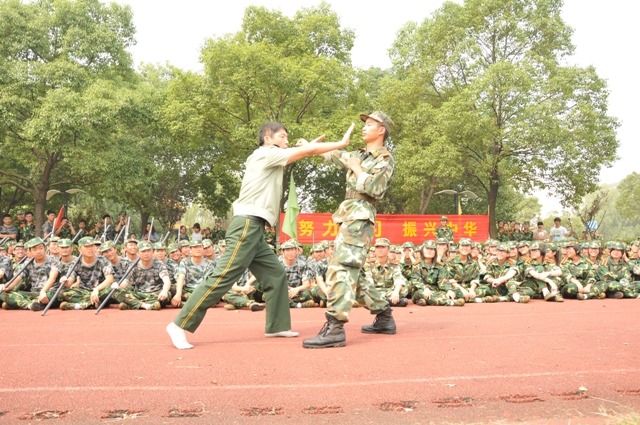 教官演示擒拿格斗(军训办 摄)