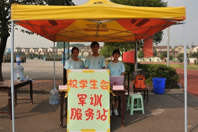 为学弟学妹们服务(军训办 摄)