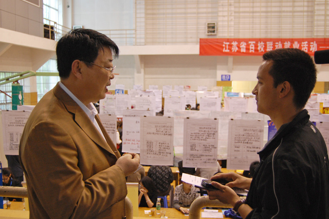 首先在学校层面上,组织了几场比较重要的综合型招聘会,包括今天的招聘会,以及将在五月下旬举行的另一场规模较大的招聘会,在毕业之前给毕业生提供再一次就业选择机会;另外各个学院也组织了一些针对性较强的小型招聘会,例如教育管理学院针对本院的学前教育专业举行了一场幼儿园联合招聘会,取得较好的效果。其实毕业生的就业工作是一项长期的工程,做好毕业生就业工作的关键在于我们能否培养出符合社会发展需要、具有较强适应能力的人才。这就可能不是举行一两场招聘会就能解决的问题,而应该在教学课程改革、教学方案培养以及毕业生的能力锻炼途径上都要进行改革和创新。