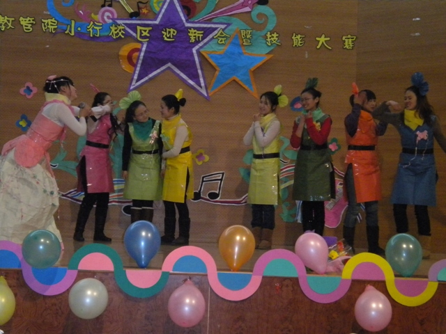迎新会内容丰富,节目形式多样,融合了歌舞、话剧、小品和民乐等各种元素,为我院师生带来一场别开生面的视听盛宴。09学前的民乐合奏《金蛇狂舞》以精湛的演奏技艺震撼全场;吉敏、范洁等五位同学带来的动感街舞《BANG》,引起场下观众声声尖叫,将联欢会气氛推向高潮;话剧《白雪公猪》诙谐幽默的表演使大家捧腹大笑,其自制的惟妙惟肖的纸衣服更是给观众留下深刻的印象。联欢会在08小教班温馨的小合唱《爱的翅膀》中圆满落下帷幕。