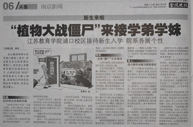 "植物大战僵尸"来接学弟学妹
