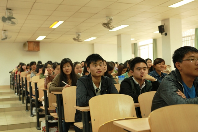 黄老师以自己的个人经历为主线,结合大量图片,直观介绍了特级教师成长的几个阶段。她幽默热情的演讲营造了轻松活跃的气氛,深深吸引了在场的每位学生;她的执教理念和观点受到大家的高度关注。同学们普遍感到讲座鲜活,富于启发。