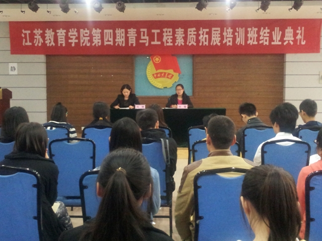 11月3日上午,我院第四期“青马工程”素质拓展培训班在草场门校区大学生活动中心举行结业典礼。团委副书记刘莹出席会议,来自三个校区的培训班全体学员共计37人参加会议。