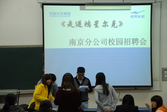 11月2日下午,有中国网球服饰第一品牌之称的“鸿星尔克”南京分公司来我院举行了校园招聘会。