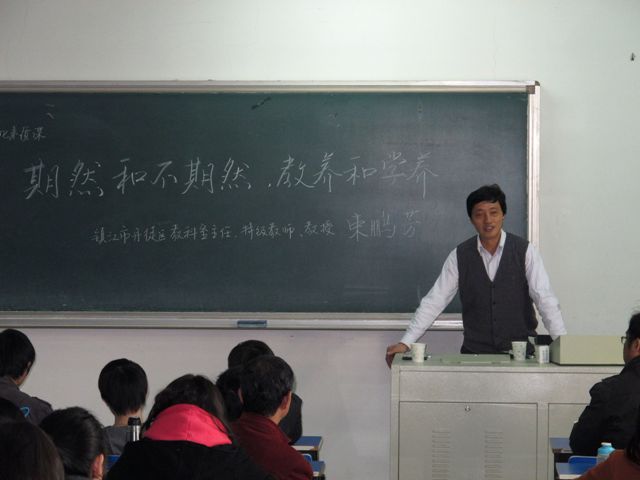 11月7日下午,人文学院在浦口校区教学楼228成功举办文化素质课讲座。镇江市丹徒区教科室主任、特级教师束鹏芳教授作了题为《期然和不期然、学养和教养》的精彩讲座,人文学院12级新生参加。