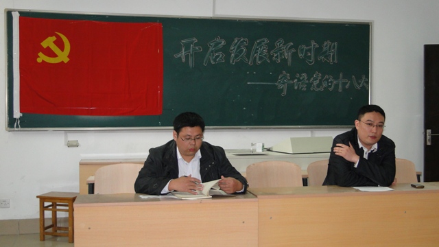 会上,党员们结合家乡、家庭发生的重大变化,畅谈中国的发展变化和辉煌历程。会议现场气氛热烈,参会人员纷纷表达自己对党的十八大召开的喜悦情怀,并结合自身如何做好本职工作,逐一作了发言。大家纷纷表示一定要发挥学生党员的先锋模范作用,努力学习,为我校的改制迎评工作贡献自己的力量,以优异的成绩向党的十八大献礼。