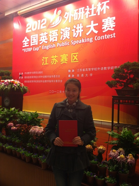 11月16号,外语系陈敏欣、朱琦娜同学代表我院赴南通大学参加“外研社杯”全国英语演讲大赛江苏省赛区决赛,经过紧张角逐,双双胜出荣获大赛三等奖。