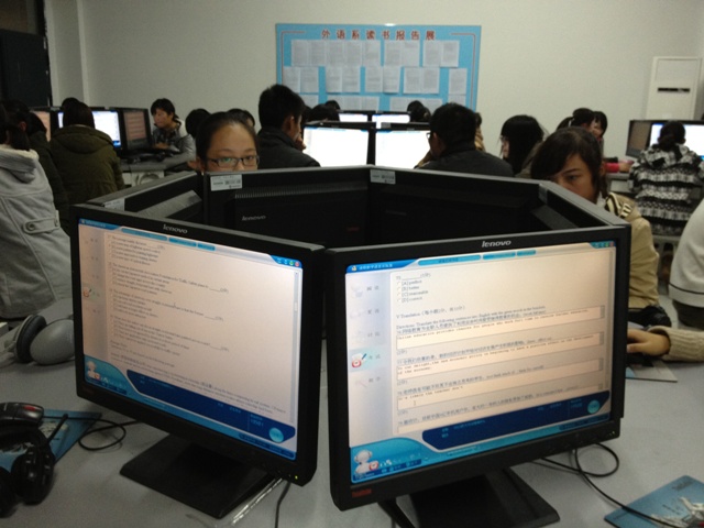 经过一段时间的精心准备,11月21日下午,外语系在浦口校区语言实训中心成功进行了大学英语计算机考试试点工作。