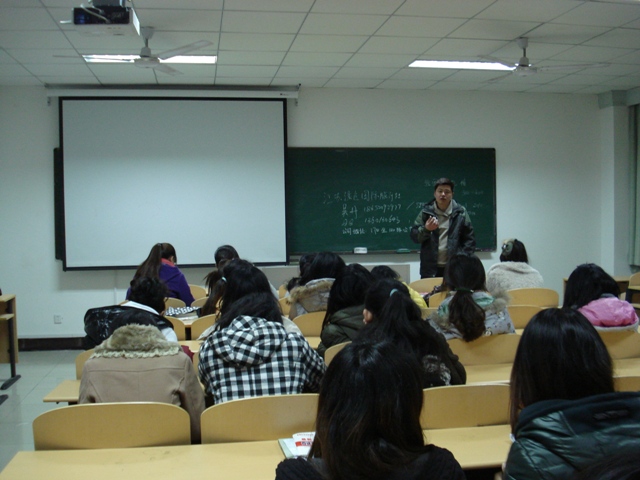 5教室举办了2013届毕业生第三场实习就业招聘会,招聘单位有江苏绿色国际旅行社和“扬州三人行”旅行社南京分公司,2013届旅游专业专科毕业生参加。