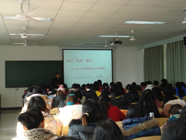 12月19日下午,地理系邀请江苏省特级教师、苏州第十中学谢延新校长,来小行校区作了题为《敬业、勤业、精业——当一名好教师的心路历程》的精彩讲座,地理系全体师范生参加,讲座由地理系主任朱捷主持。