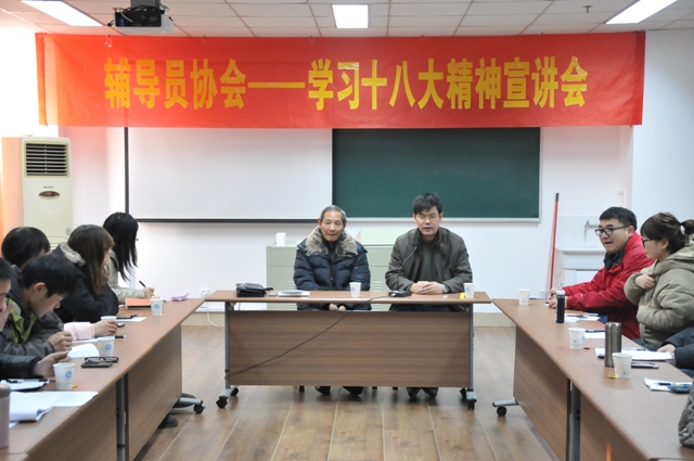 为深入学习贯彻党的十八大精神,进一步提高辅导员的政治理论素养,加强我校辅导员队伍建设,提升学生工作水平,新年伊始,学工处举办了“学习贯彻党的十八大精神”宣讲会,邀请我院关心下一代工作委员会副主任陈懋华为全体辅导员作了宣讲报告。学工处处长刘贵友主持报告会。