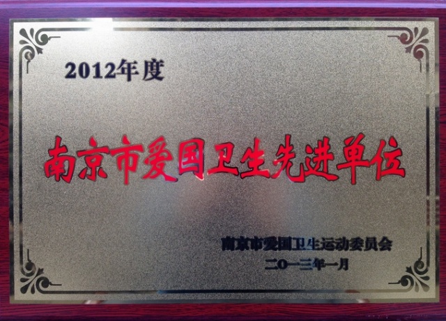 日前,我院被南京市爱国卫生运动委员会评为2012年度“南京市爱国卫生先进单位”。