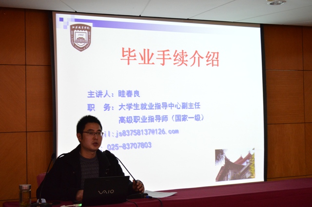 会上,就业指导中心眭春良向大家介绍了2013届毕业生毕业相关手续和2013年大学生村官选聘政策。他列举了往年毕业生经常出现的问题和应该注意的事项,分别从报到证、协议书、推荐表、档案问题等多个方面向学生详细介绍了派遣流程情况。另外眭老师还重点解读了《2013年大学生村官选聘工作任职公告》,并印发相关文件给每一位到场的学生仔细阅读。学生现场提问,互动气氛活跃。