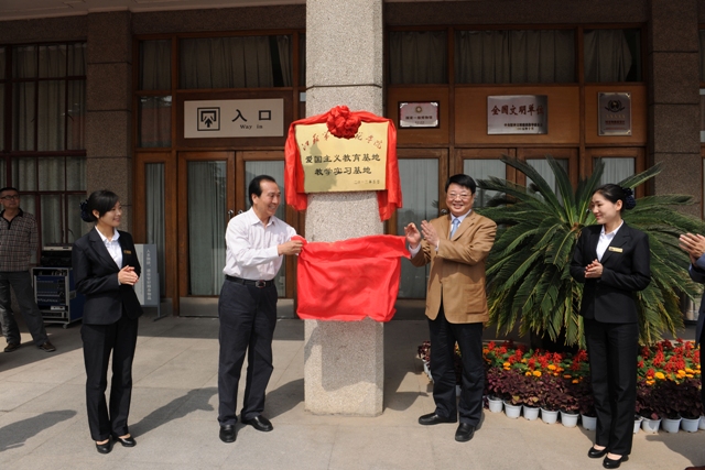 段长志先生和程建军教授代表双方在共建协议上签字,并为爱国主义教育基地、教学实习基地揭牌。