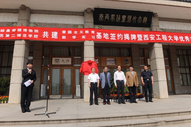 曹玮研究员代表秦陵博物院致辞。他说,在第37个国际博物馆日,秦陵博物院与江苏第二师范学院共建爱国主义教育基地、教学实习基地,这是非常有意义的。博物馆是保护、研究、传承和展示历史文化的人文殿堂,是国民教育的重要阵地。为了保护文化遗产,传承历史文明,我们肩负着发扬民族精神、激发人们爱国主义情怀的重要职责。今后,我们将充分发挥博物院的教育功能,开展寓教于乐的教育活动,使博物院成为学校的教学实习基地和第二课堂。