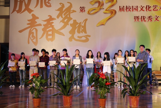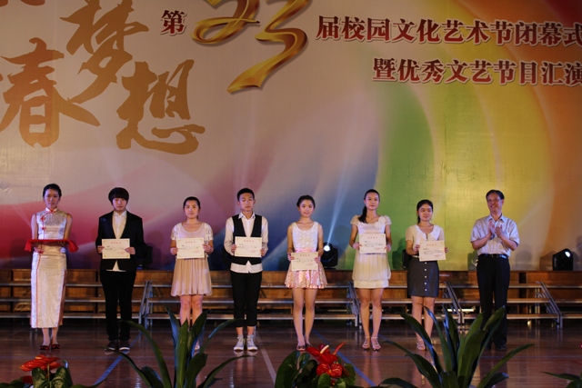 闭幕式上举行了颁奖典礼。程建军、刘青平及相关部门负责同志先后为在本届文化艺术节各项活动中获奖的同学颁发奖状。