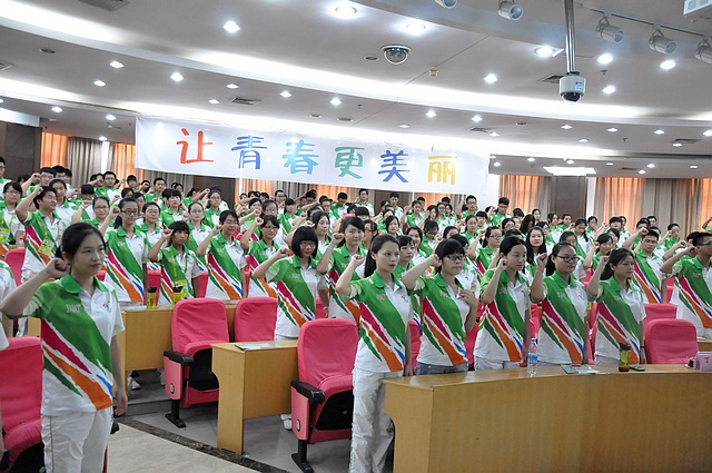 中文系2011级蒋聪聪同学代表我院全体亚青志愿者作了青春洋溢、热情向上的发言,充分表达了我院志愿迎接盛会、祝福盛会的信心和决心。随后,320名志愿者庄严宣誓,“我志愿服务2013南京亚青会,尽己所能,坚守岗位,服从安排,协作求同,播撒热情,快乐奉献,共享青春盛会,共创活力亚洲!”。