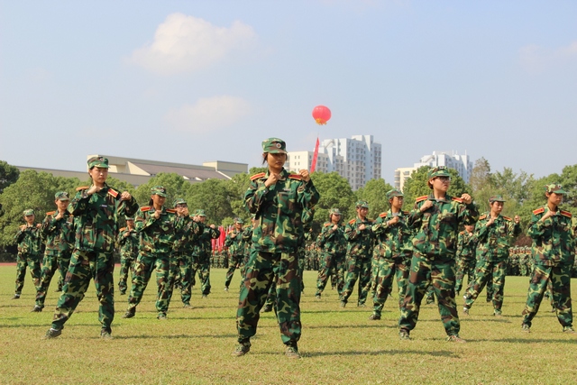 “向前,向前,向前……”,伴随着激昂的《解放军进行曲》,各军训方队在军训团团旗的引导下,迈着整齐的步伐一一经过主席台,接受与会领导和教官的检阅。同学们身着军服,精神饱满,步伐矫健,口号响亮,充分体现出我院新生青春洋溢的蓬勃朝气和报效祖国的壮志豪情。示范方队和施训教官进行了女子拳术、男子擒敌拳、男子棍术和擒敌技术表演,他们整齐划一的动作和刚劲有力的气势,赢得了在场领导和师生们的阵阵掌声。