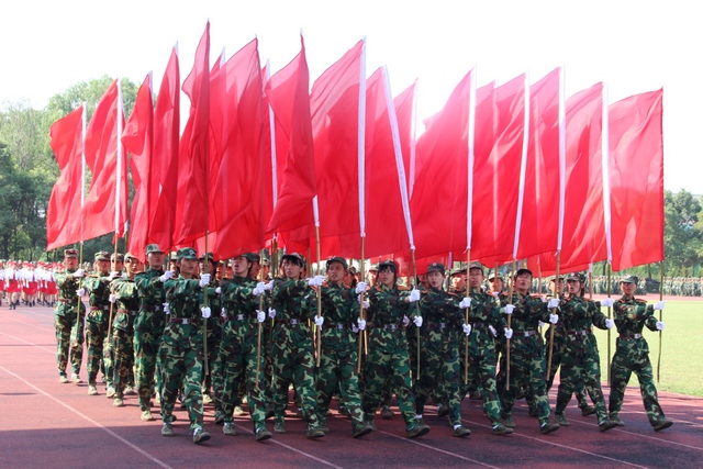 9月21日上午,阳光普照,彩旗飘扬。我院2013级普高新生开学典礼暨军训总结表彰大会在浦口校区田径场隆重举行。