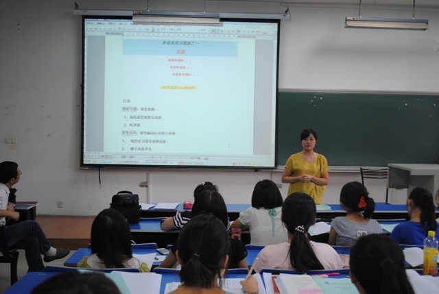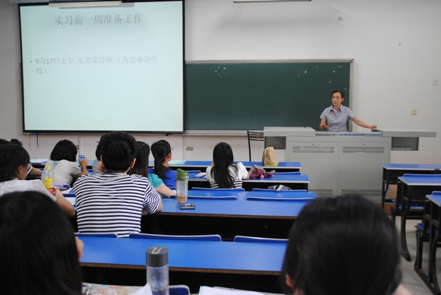 本学期开学以来,外国语学院通过系列活动周密组织实习工作。学院邀请南京市教研室教研员张海燕老师和南京外国语学校朱善萍老师分别就如何上好一节英语课和英语课堂教学艺术作了精彩讲座。多管齐下的指导活动增强了同学们走上讲台的信心和初始职业的能力。经过不断探索,依靠全体师生的共同努力, 外国语学院的实践教学体系日益完善,实践教学质量不断提高。