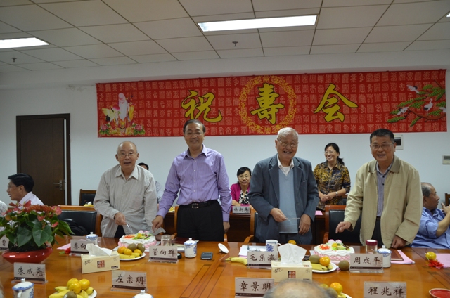 离退休协会理事长、70岁寿星曹亚民教授,90岁寿星代表毛系瀛院长、80岁寿星代表王存信副教授、70岁寿星代表顾于菲教授先后作了热情洋溢的精彩发言,他们回顾了自己不同的人生经历,一致向学校表达了感激之情!毛系瀛、尹家鹏还即兴朗诵了自己的诗作!大家纷纷表达了对学校事业发展的关心关切之情。