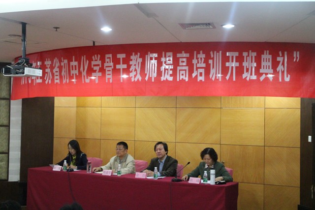 10月17日上午,我院在草场门校区现代教育技术楼一楼报告厅隆重举行2013年江苏省省市合作农村初中化学教师提高培训开班典礼,副院长周成平、生命科学与化学化工学院副院长金浩、继续教育办公室副主任耿珺出席,典礼由生命科学与化学化工学院总支书记郭琦主持。