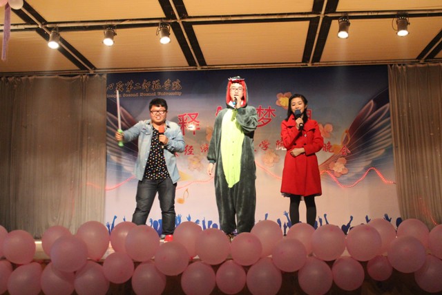 11月7日晚,经济与法政学院在浦口校区一食堂二楼举办2013级迎新晚会,院党总支书记李安林、浦口校区管委会副主任赵俊、学工处副处长司南、团委副书记丁莹等出席晚会。