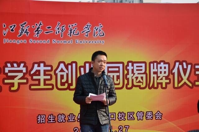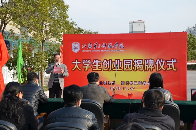 招就处处长刘贵友首先向与会领导、嘉宾介绍了我院大学生创业园的建设背景、筹建过程、项目遴选等方面的情况。同文书店负责人、2012级汉语言文学专业尹布桥同学代表创业团队发言。他衷心感谢学校对大学生创业的扶持,表达了管理好创业项目的信心和决心。