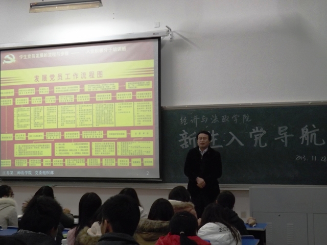 晚,经济与法政学院新生入党导航在浦口校区教学楼