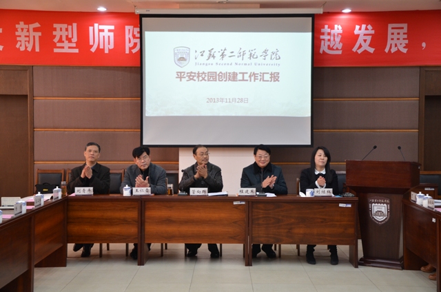 11月28日,受省教育厅、省公安厅和省综治办委托,以南京市教育局安全管理处处长张晓惠为组长的考核验收组,对我院创建“江苏省平安校园”情况进行了考核验收。考核验收工作分为听取汇报、查阅台账、实地察看、问卷调查、综合评定五个环节。