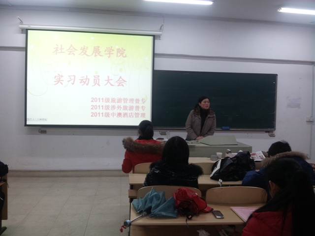 为帮助毕业生树立正确的就业观、择业观、了解就业和实习的相关知识,2月19日,社会发展学院举行2014届毕业生就业实习动员大会,院党总支书记、副院长刘素梅出席会议,就业专员辛宪军主持会议。