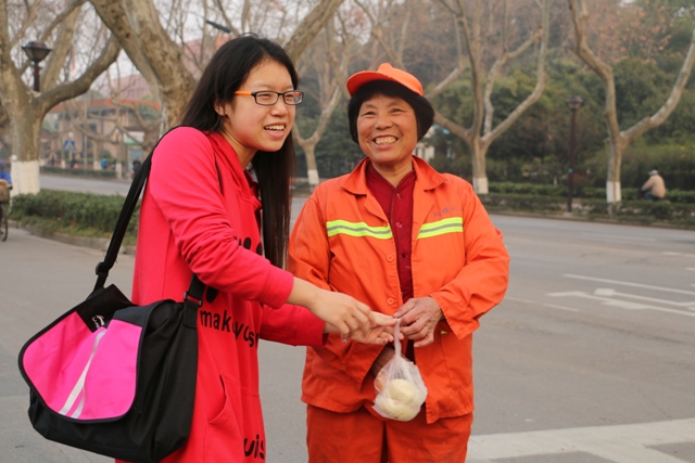 3月18、19日一大早,现代传媒学院学生会的同学们来到北京西路,给鼓楼区环卫工人送上爱心早餐。同学们用微笑和热气腾腾的早餐来表达对环卫工人的尊重与支持。环卫工人们热情地道谢并积极与同学们交流,现场气氛十分融洽温暖。