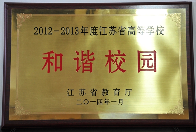 近日,我院荣获由省教育厅授予的“2012-2013年度江苏省高等学校和谐校园”荣誉称号。这是继获得“2010-2012年度江苏省文明单位”、“2011-2012年度江苏省高等学校思想政治教育先进集体”称号后,我院在精神文明建设领域再一次获得的殊荣。