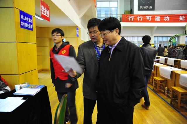 4月16日下午,招生就业处就业办在草场门校区体育馆内举办“江苏第二师范学院2014年春季大型教育师资专场招聘会”。院党委副书记、副院长程建军亲临现场指导,招就处全体人员及二级学院就业工作负责人、就业专员出席招聘会。
